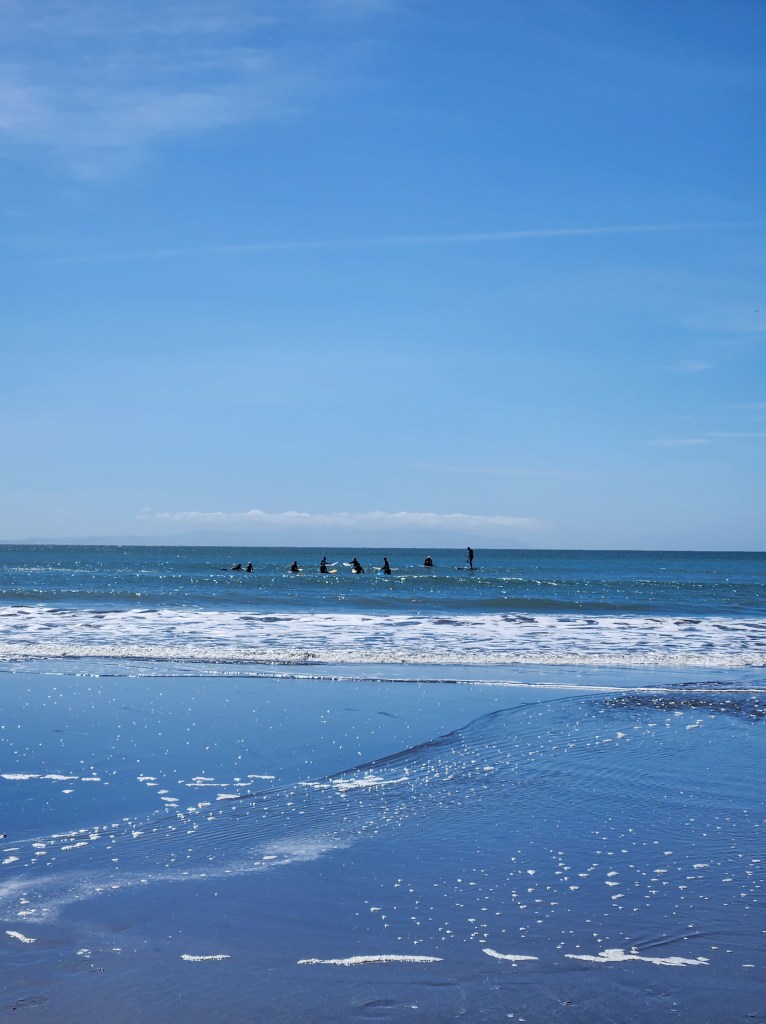R gave us a beautiful sunny day with a perfect surf. It was also my husband’s birthday and he, along with family and surfing friends, came together in the water and sent his ashes into the waves. A remarkable send off for a remarkable man.